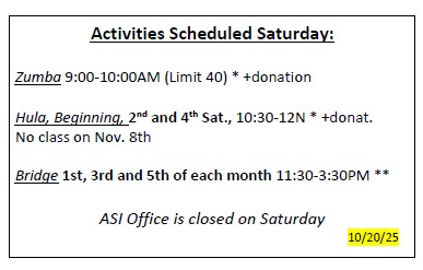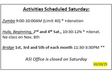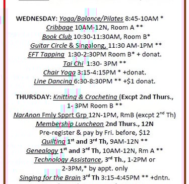 There are lots of activities at Active Seniors Inc, such as Tours, Dancing, Bridge, Technology training, monthly luncheons, and many more!