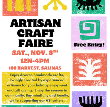 The 4-hour event will be held at the Active Senior Center (ASI) at 100 Harvest St. from 12N-4pm on Nov. 8th. Don't miss this opportunity to find one-of-a-kind gifts for yourself or your loved ones. Note: most artisans will only take cash. Come support our local artists! Free admission & open to all. Parking lot will fill early, so please find parking along side streets.